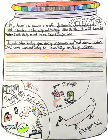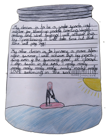 Classes focused further on one of Dahl's many brilliant titles, The BFG. Children explored how the BFG catches dreams and how he transfers them to jars. Children then wrote their personal dreams (goals) on jar templates.